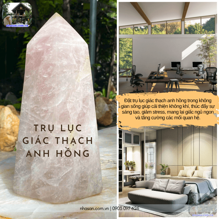 Đặt trụ lục giác thạch anh hồng trong không gian sống giúp cải thiện không khí