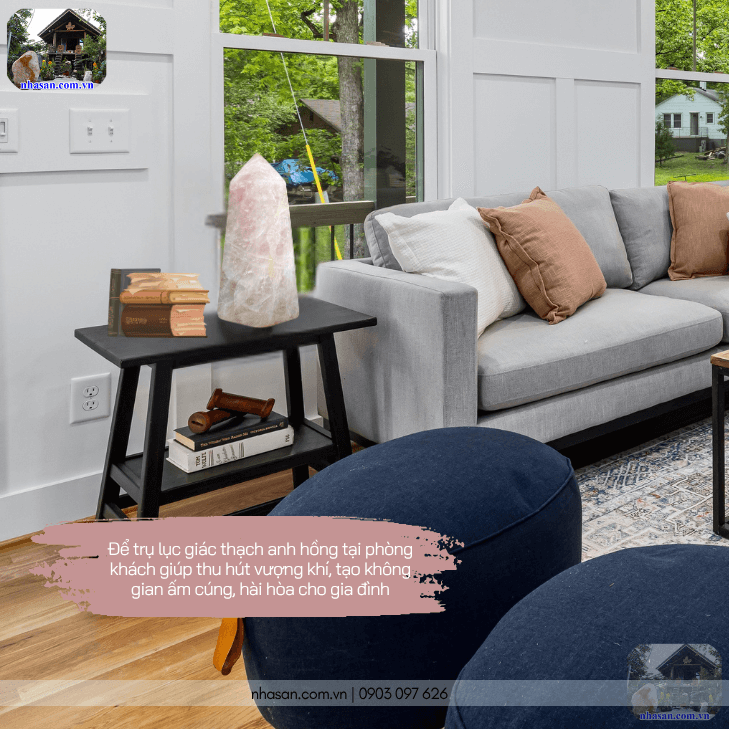 Đặt trụ lục giác thạch anh hồng tại phòng khách