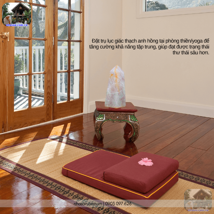 Đặt trụ lục giác thạch anh hồng tại phòng thiền/yoga