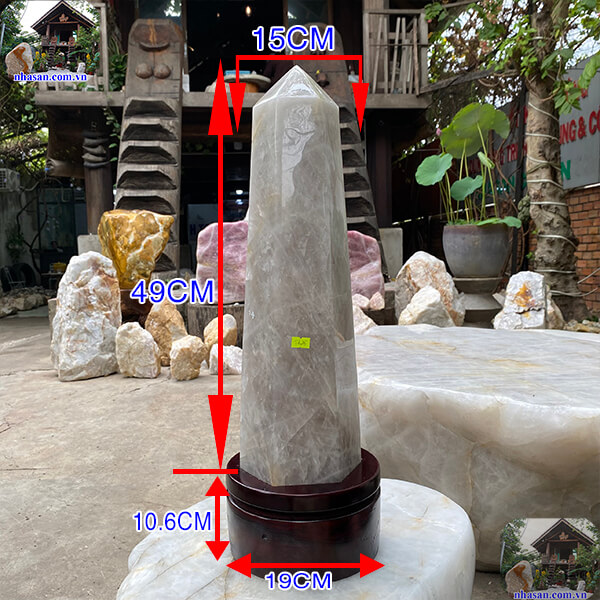 Trụ lục giác đá thạch anh hồng nặng 16kg trấn trạch