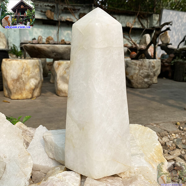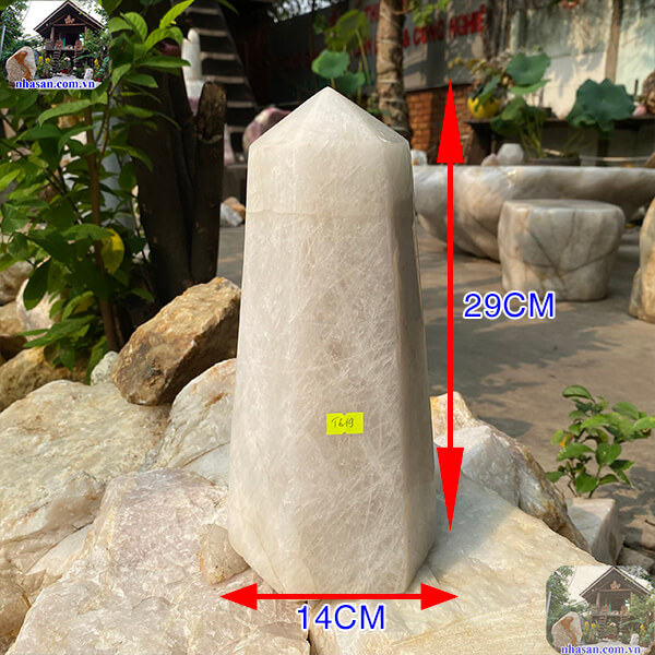 Trụ lục giác đá thạch anh trắng cao 29cm