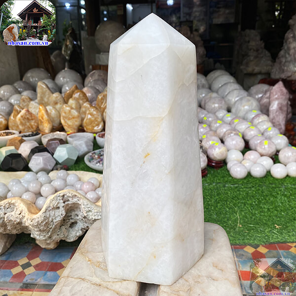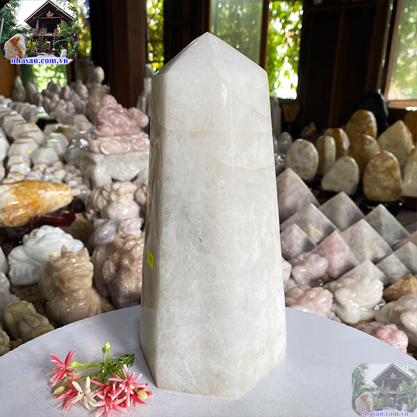 Trụ lục giác đá thạch anh trắng cho mệnh thủy