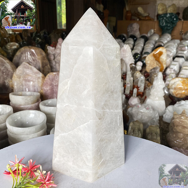 Trụ lục giác đá thạch anh trắng tự nhiên