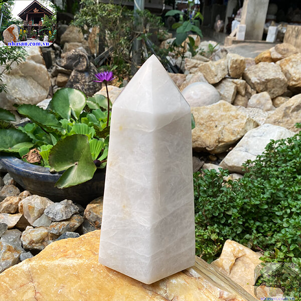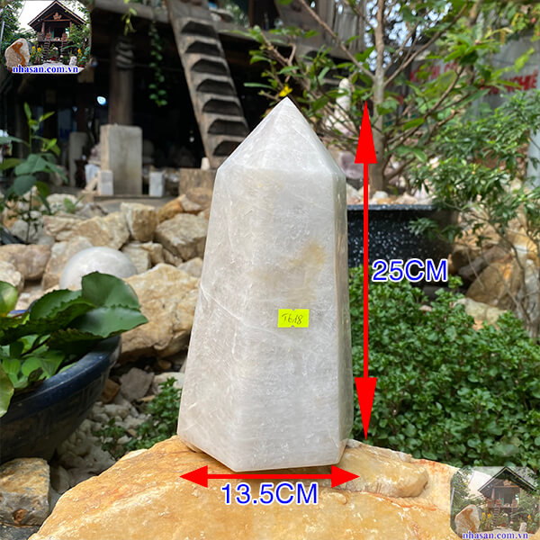 Trụ lục giác đá thạch anh trắng cao 25cm