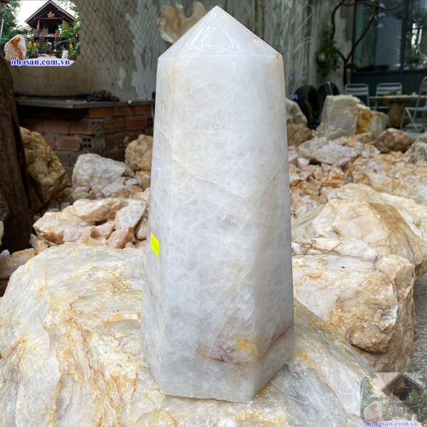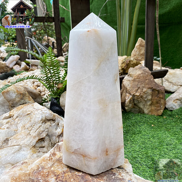 Trụ lục lăng đá thạch anh trắng tự nhiên