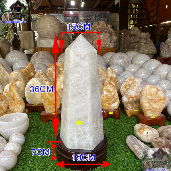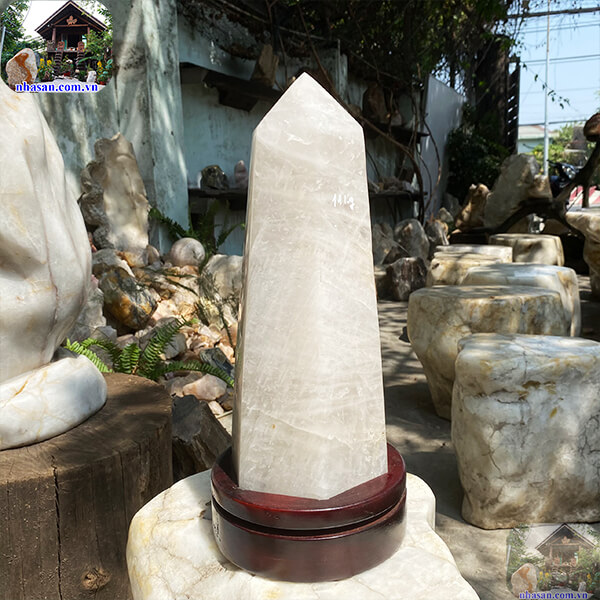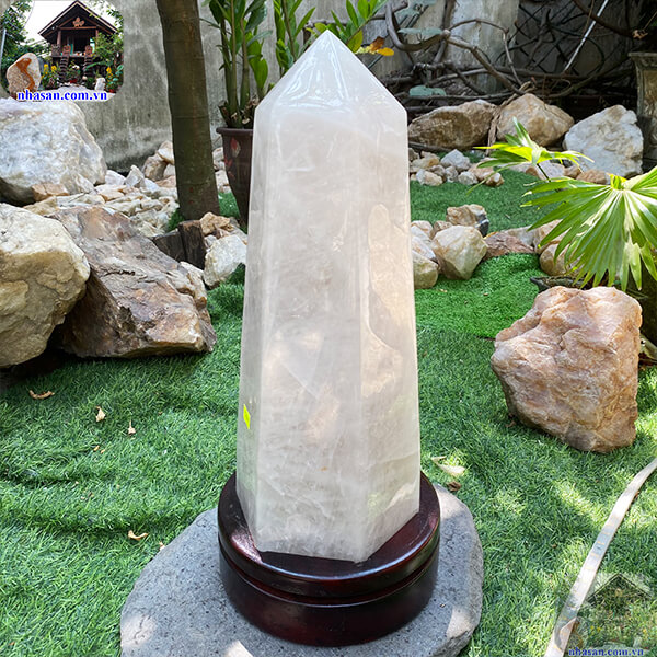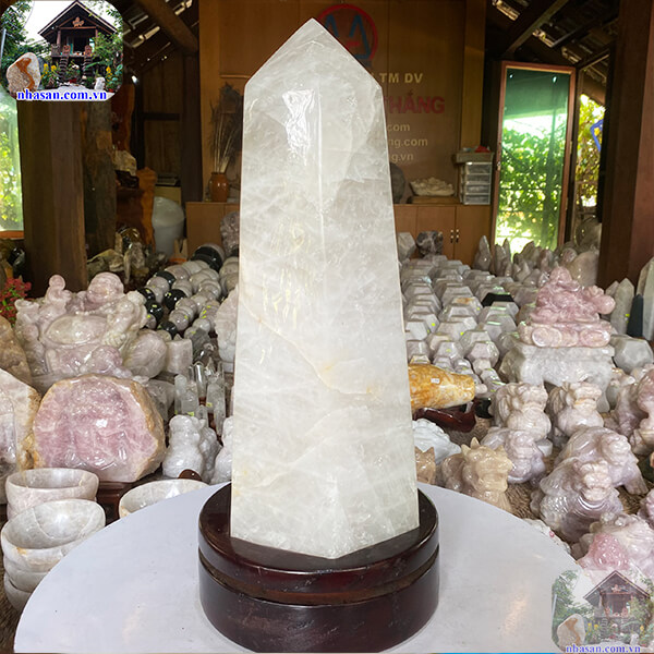 Trụ lục lăng thạch anh trắng nguyên khối