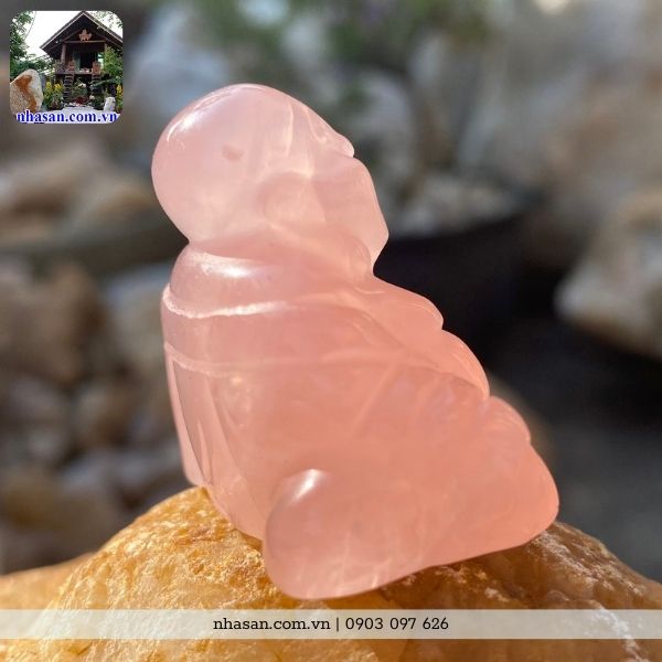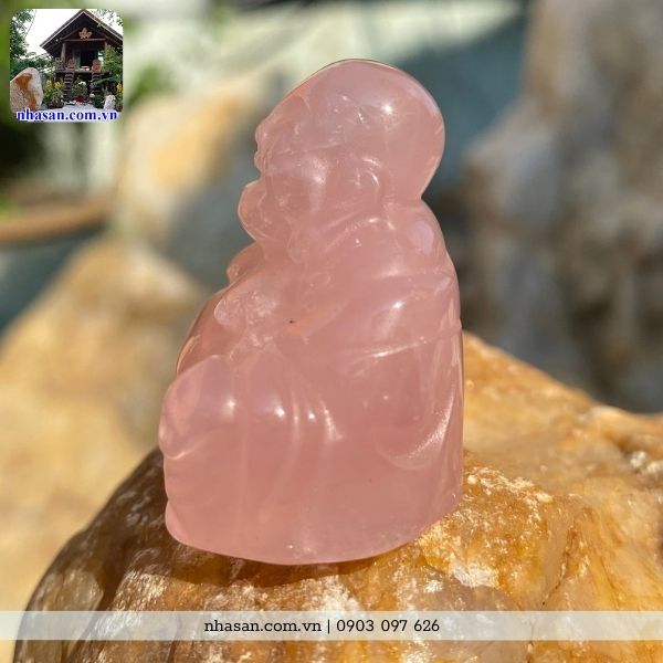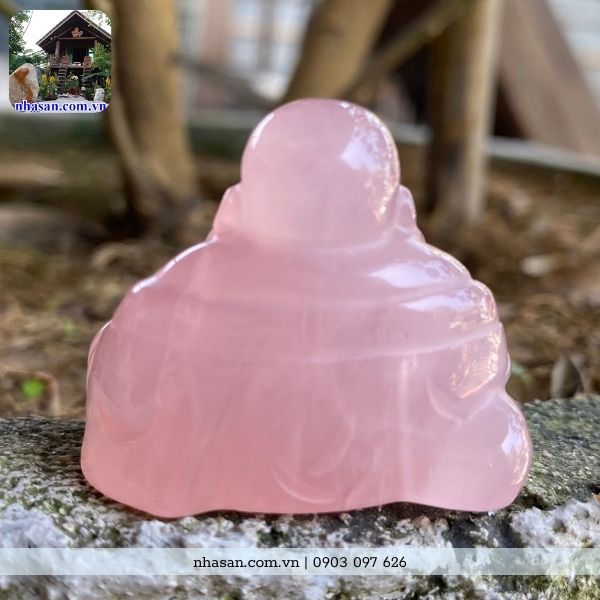 Phật Di Lặc được chế tác từ đá thạch anh hồng tự nhiên 100%