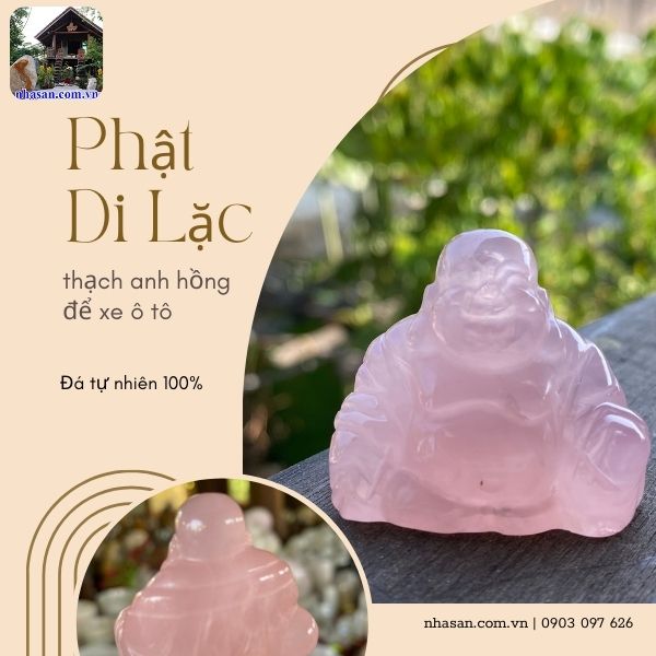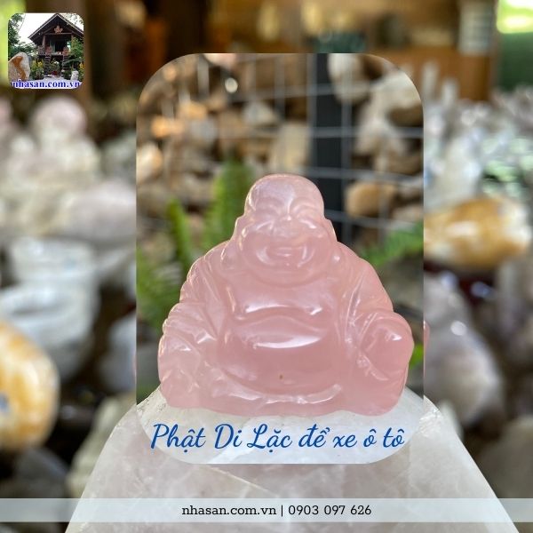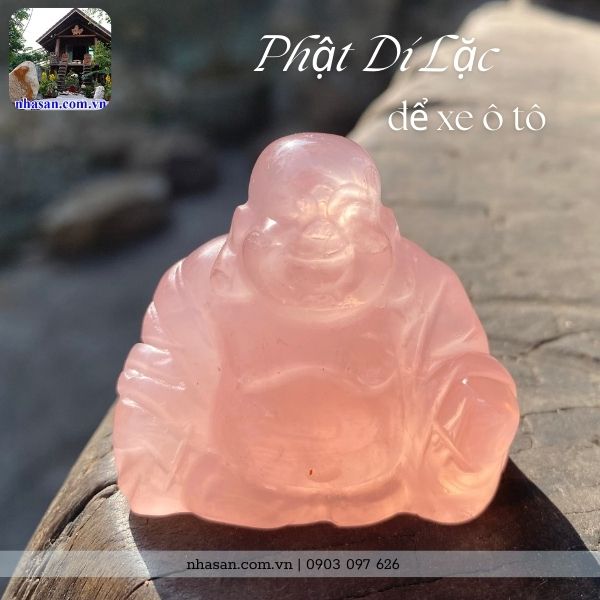 Phật Di Lặc để xe ô tô thạch anh hồng