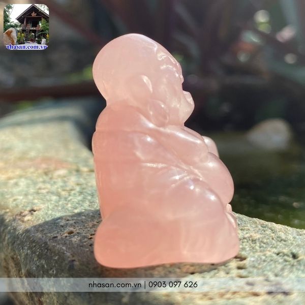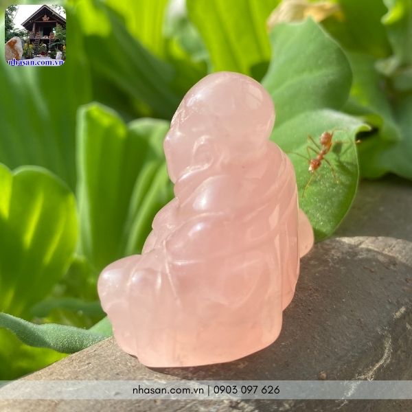 Tượng Phật được chế tác tinh xảo từ đá thạch anh hồng tự nhiên
