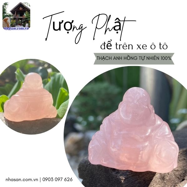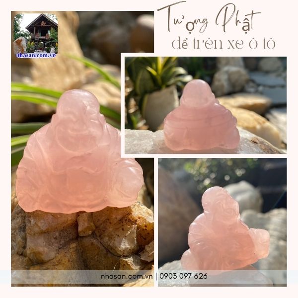 Tượng Phật Di Lặc thạch anh hồng để xe ô tô