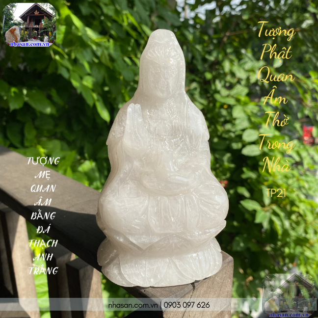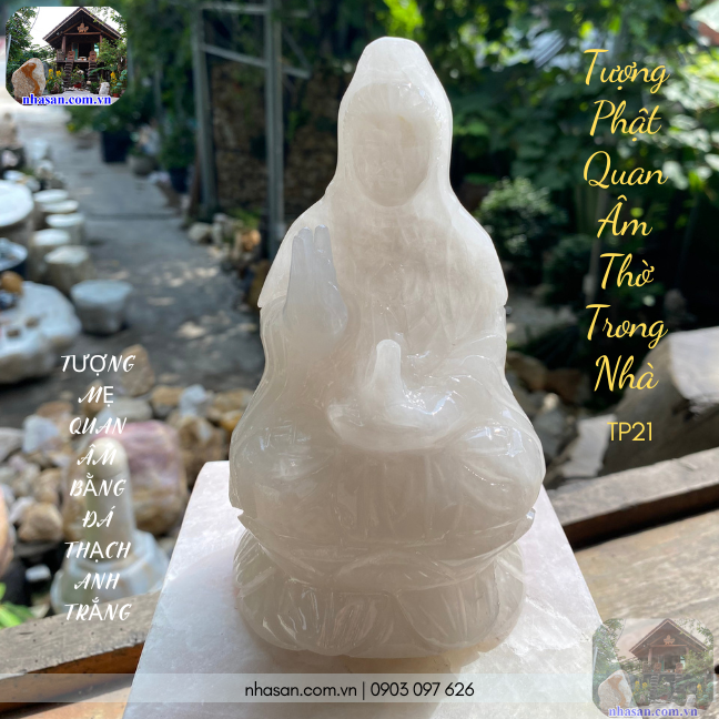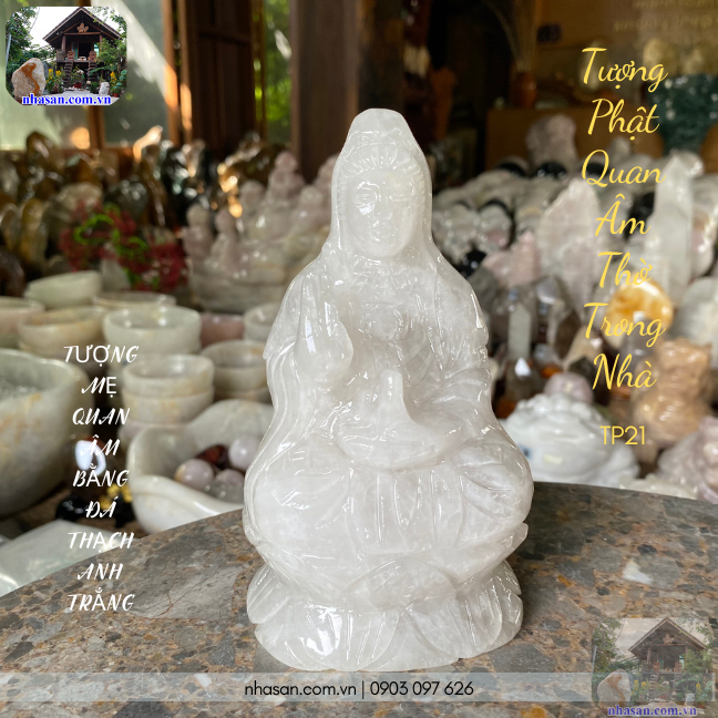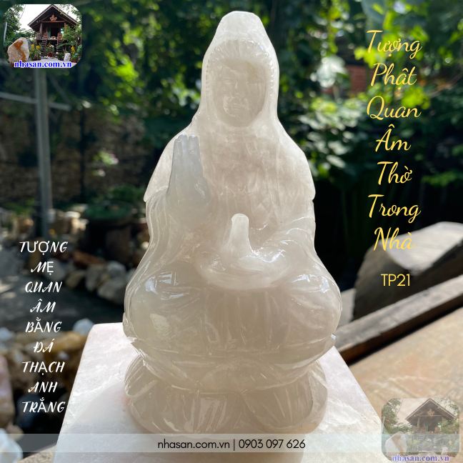 Giá tượng Quan Âm Bồ Tát bằng đá thạch anh trắng