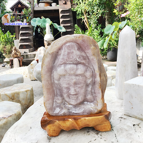 Tượng mặt Phật Quan Thế Âm bằng đá thạch anh hồng