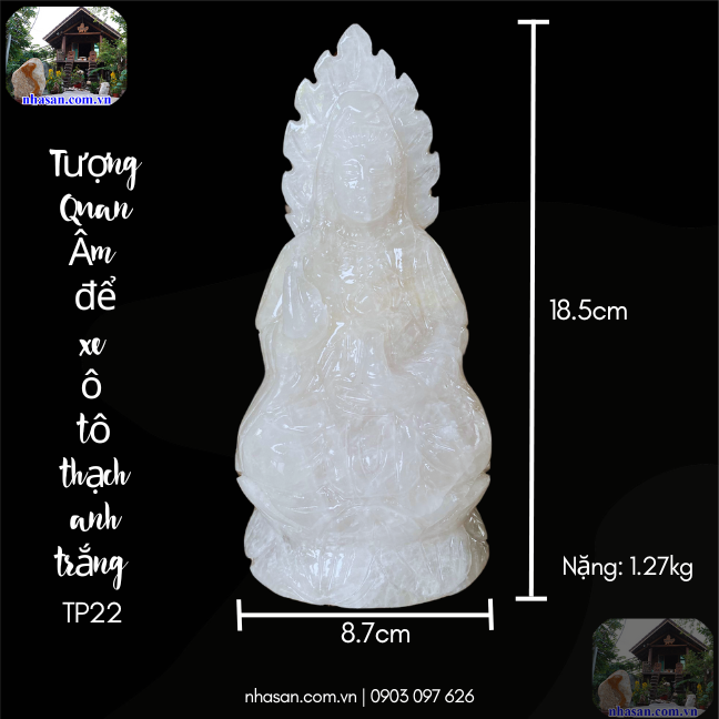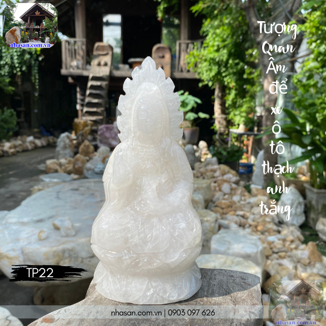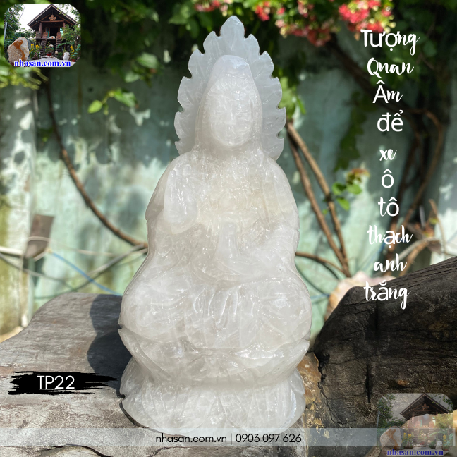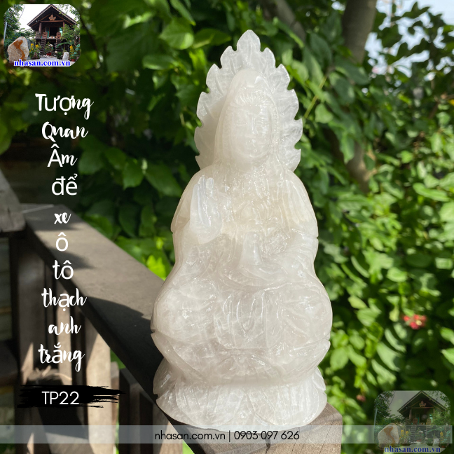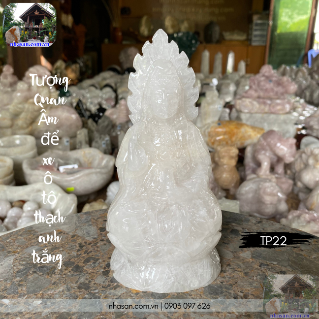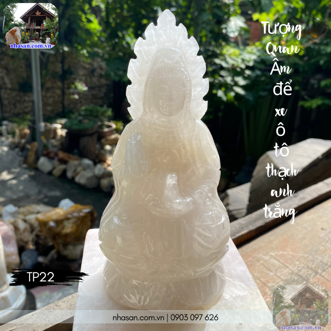 Tượng Phật Quan Âm để xe ô tô đá thạch anh trắng