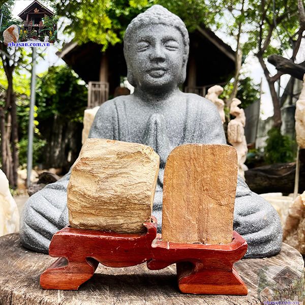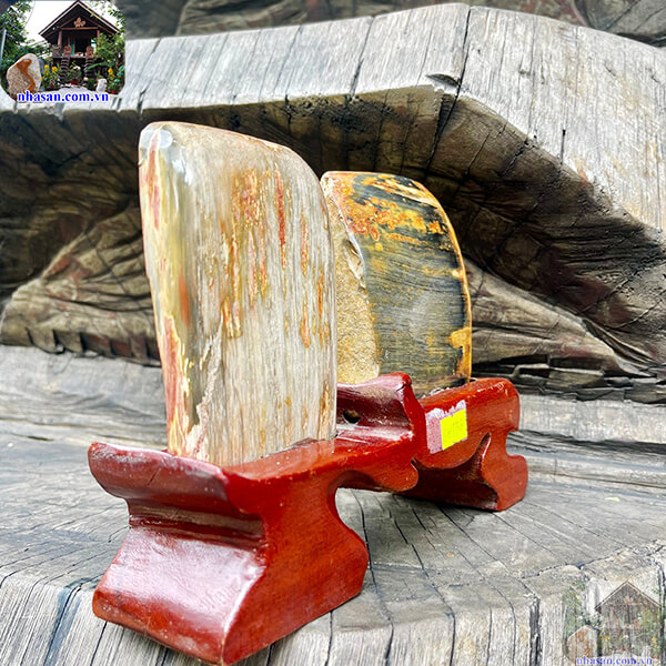 Vật phẩm phong thủy trang trí bàn làm việc từ gỗ hóa đá