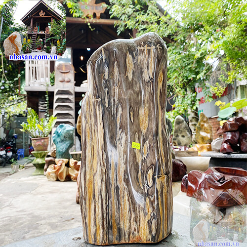 Trụ gỗ hóa đá vật phẩm phong thủy trang trí tiểu cảnh cực đẹp