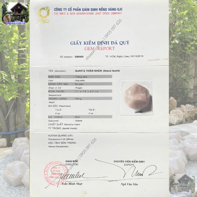- Giấy tờ: Có giấy kiểm định đá tự nhiên từ trung tâm uy tín, đảm bảo chất lượng và nguồn gốc.
