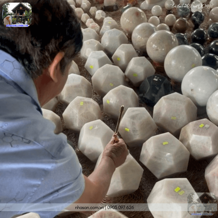 Mỗi viên đá đều được chế tác tỉ mỉ, đảm bảo hình khối 12 mặt chuẩn xác, mang lại sự cân bằng và ổn định tối ưu về mặt năng lượng và thẩm mỹ.