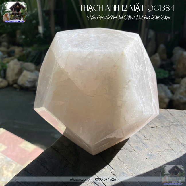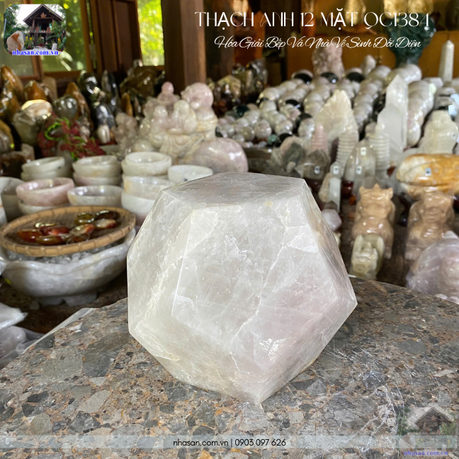 - Hóa giải xung khắc: Với 12 mặt đại diện cho 12 tháng trong năm, 12 con giáp, thạch anh 12 mặt có tác dụng cân bằng, hài hòa năng lượng, hóa giải sự xung khắc giữa bếp và nhà vệ sinh.
