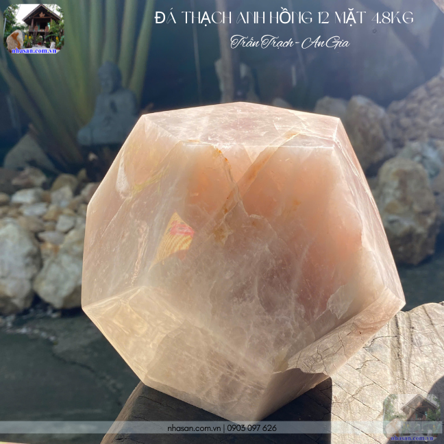 Đá thạch anh hồng 12 mặt 4.8kg trấn trạch, an gia
