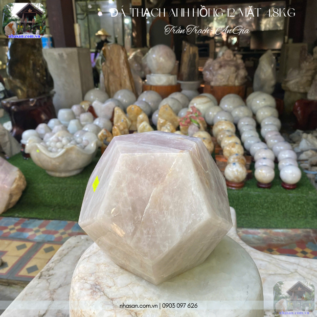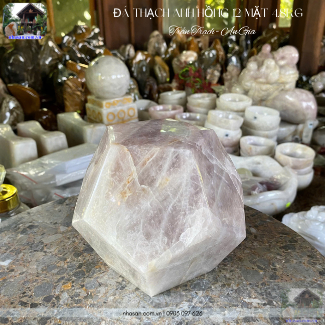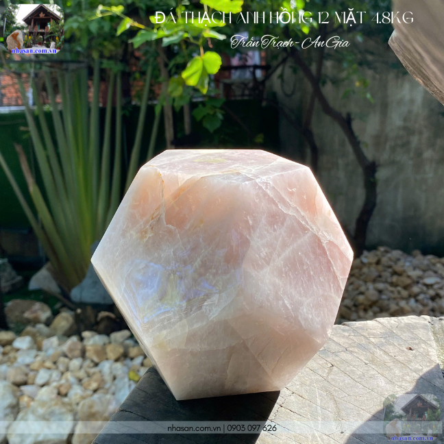 Công dụng của đá thạch anh hồng 12 mặt 4.8kg trấn trạch mạnh mẽ, đặc biệt cho nhà nhỏ và căn hộ