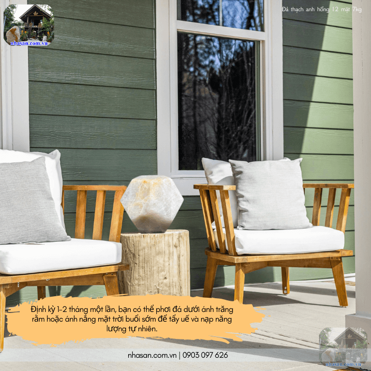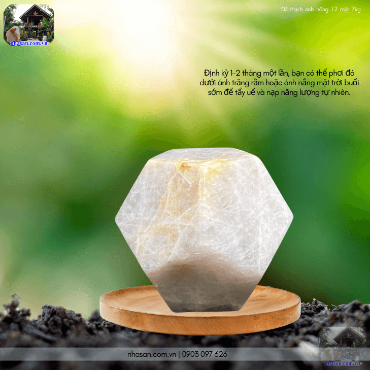 - Tẩy uế và nạp năng lượng: Định kỳ 1-2 tháng một lần, bạn có thể phơi đá dưới ánh trăng rằm hoặc ánh nắng mặt trời buổi sớm để tẩy uế và nạp năng lượng tự nhiên.