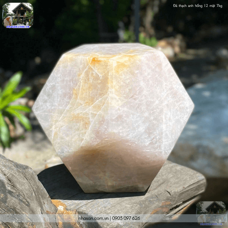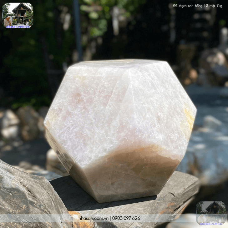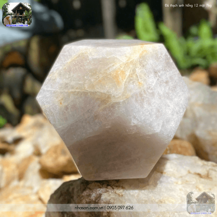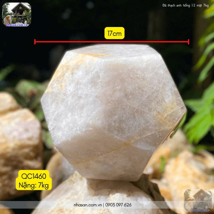 Viên đá thạch anh hồng 12 mặt 7kg QC1460