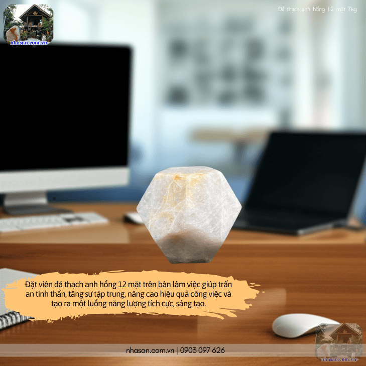 Đặt đá thạch anh hồng 12 mặt trên bàn làm việc