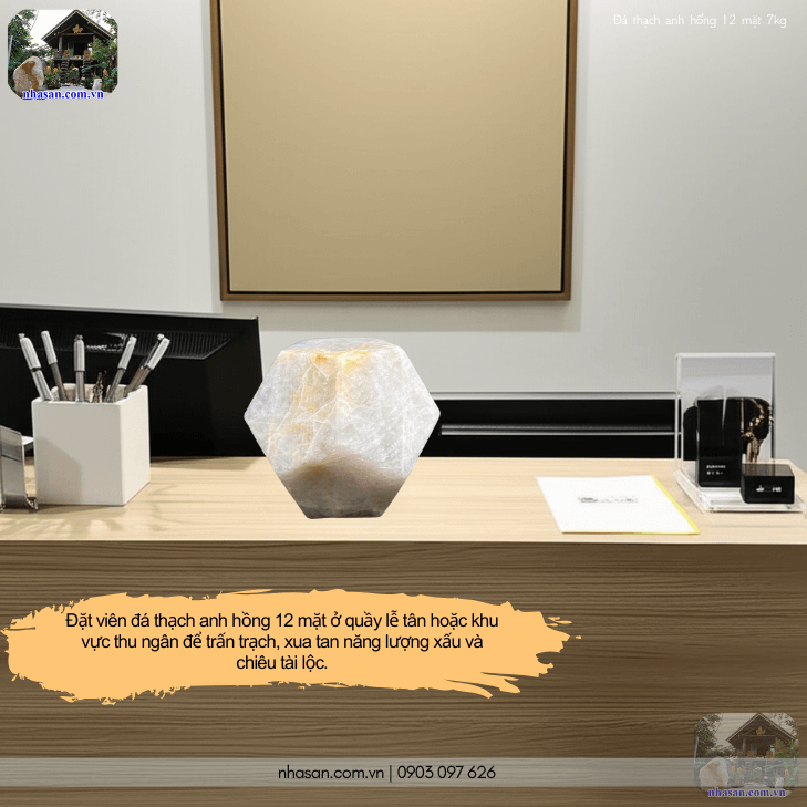 Đặt đá thạch anh hồng 12 mặt tại quầy thu ngân