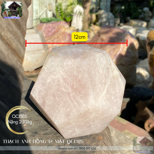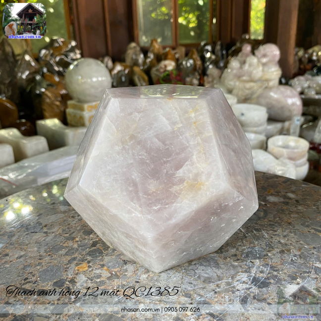 - Trang trí đẳng cấp: Với kích thước 12cm và vẻ đẹp sang trọng, viên đá thạch anh hồng 12 mặt QC1385 là điểm nhấn hoàn hảo cho không gian sống và làm việc.