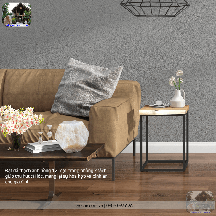 Đặt đá thạch anh hồng 12 mặt tại phòng khách