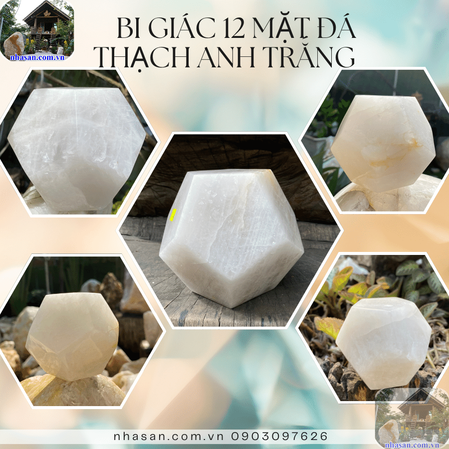 Bi giác 12 mặt đá thạch anh trắng là vật phẩm mang ý nghĩa phong thủy tốt đẹp