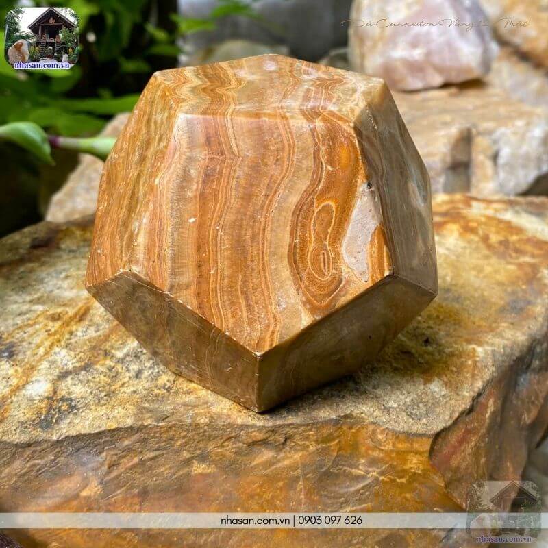 Đá canxedon vàng 12 mặt nặng 1.24kg