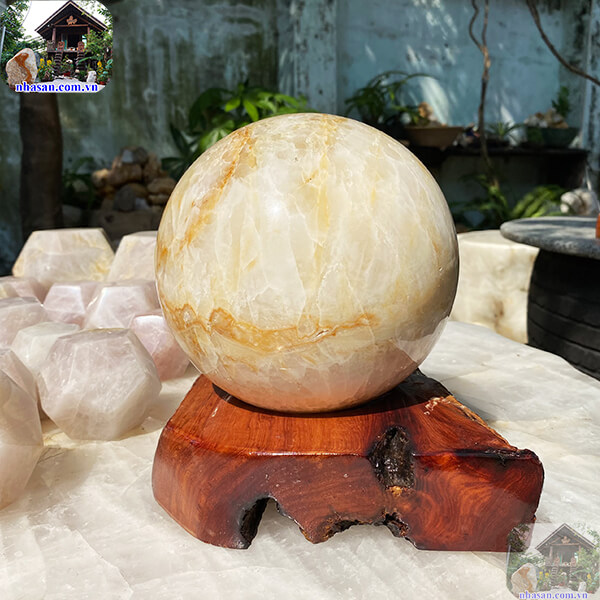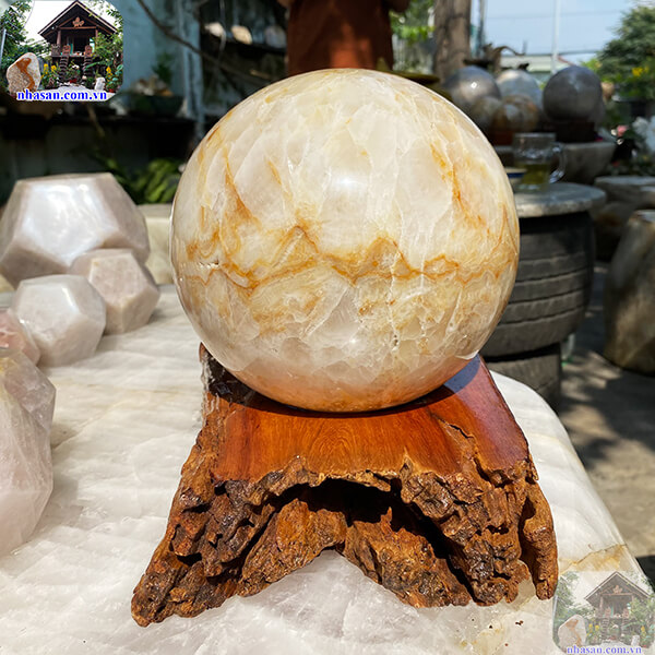 Quả cầu đá thạch anh bông vàng QC1255 đường kính 17cm