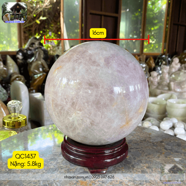Khám phá sự thanh bình của thế giới tự nhiên với Cầu thạch anh hồng QC1437, một vật phẩm phong thủy đẹp tao nhã có tác dụng như một công cụ chữa bệnh và một vật trang trí trung tâm.