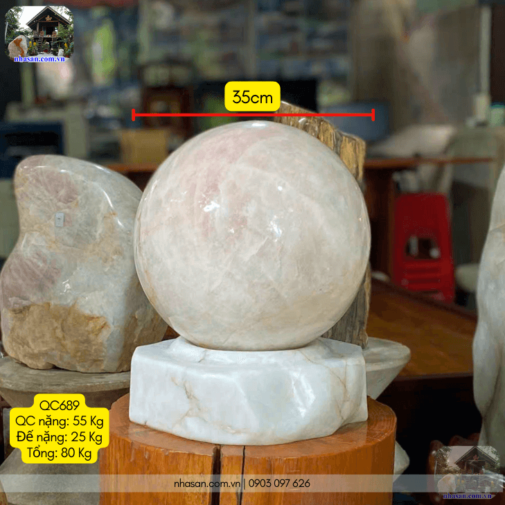Video: Quả cầu đá thạch anh hồng QC689 nặng 80kg đặt phòng khách to lớn rành cho đại gia