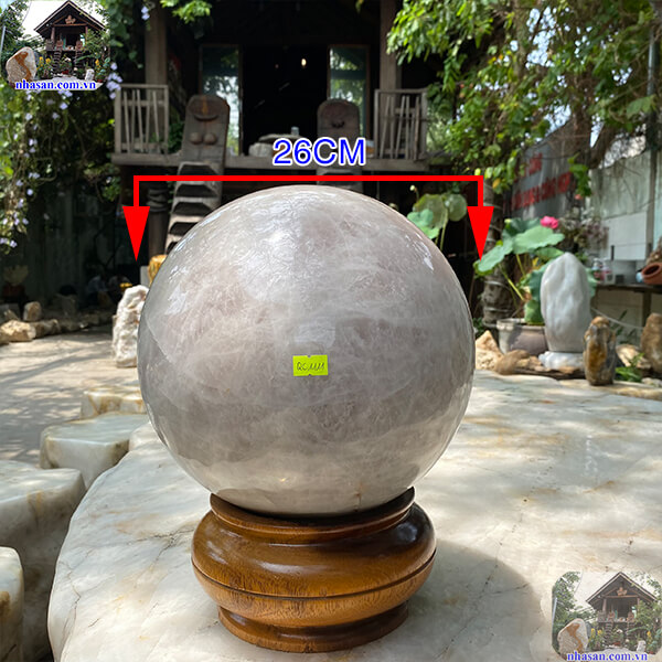 Quả cầu phong thủy đá thạch anh hồng đường kính 26cm