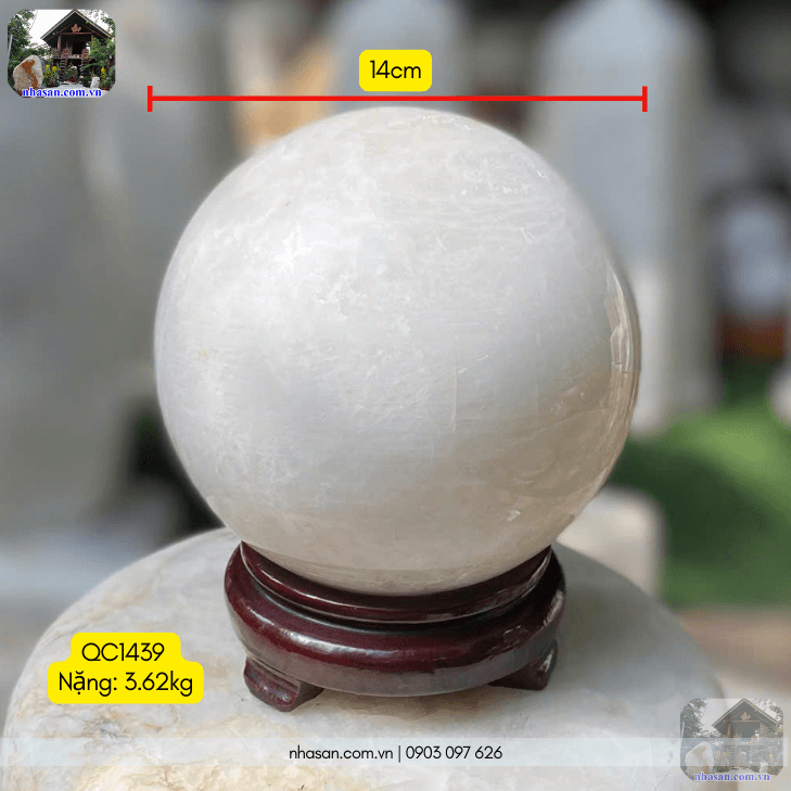 Quả cầu đá thạch anh trắng 14cm