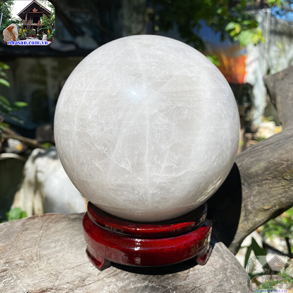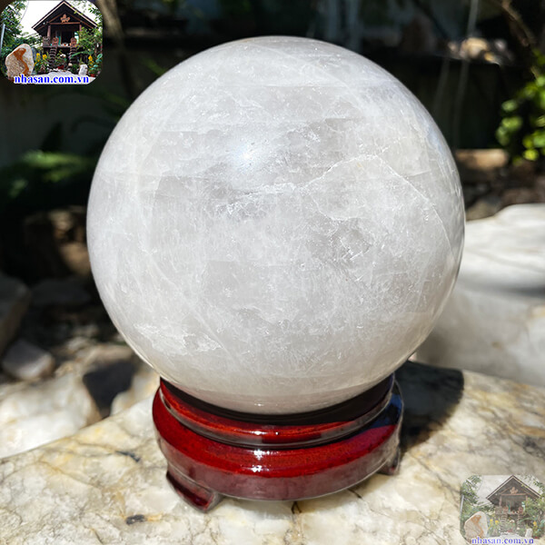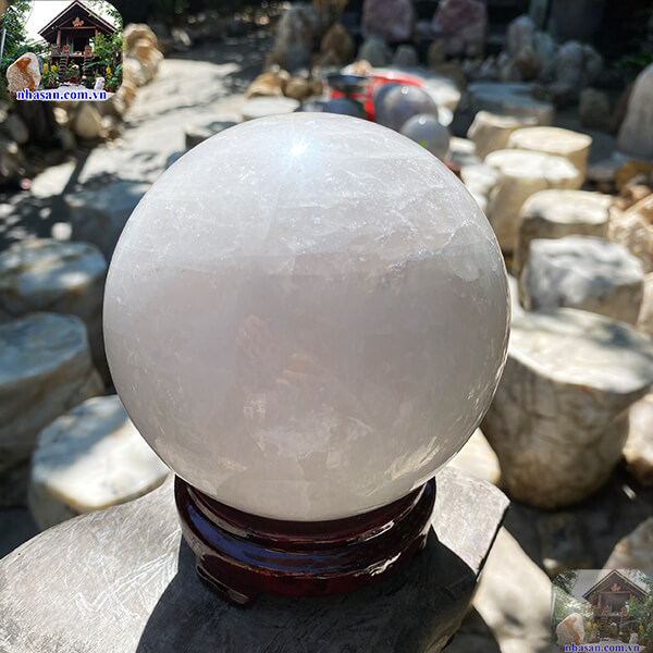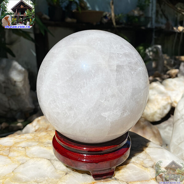 Đá phong thủy mệnh thủy quả cầu thạch anh trắng QC1299