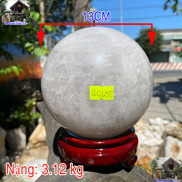 Đá phong thủy mệnh thủy quả cầu thạch anh trắng QC1299 nặng 3.12kg ĐK13cm