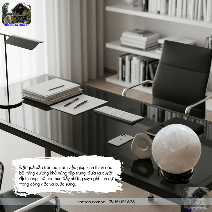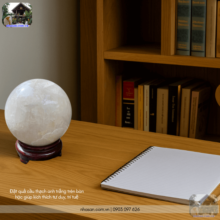 Đặt quả cầu thạch anh trắng trên bàn làm việc giúp kích thích não bộ, tăng cường khả năng tập trung