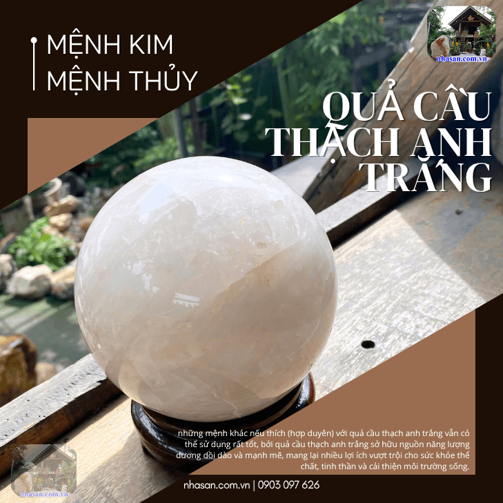 - Các mệnh khác: Ngoài hai mệnh Kim và Thủy, những mệnh khác nếu thích (hợp duyên) với quả cầu thạch anh trắng vẫn có thể sử dụng rất tốt, bởi quả cầu thạch anh trắng sở hữu nguồn năng lượng dương dồi dào và mạnh mẽ, mang lại nhiều lợi ích vượt trội cho sức khỏe thể chất, tinh thần và cải thiện môi trường sống.