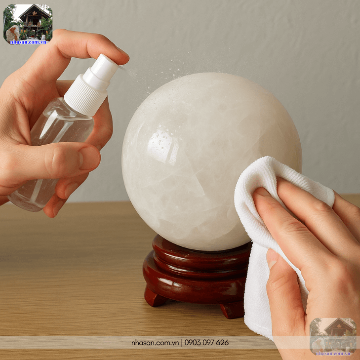 Để giữ cho năng lượng của quả cầu luôn tinh khiết và mạnh mẽ, bạn nên vệ sinh định kỳ bằng cách lau nhẹ nhàng với nước sạch và khăn mềm. Thỉnh thoảng, có thể phơi quả cầu dưới ánh trăng non hoặc nắng nhẹ để nạp lại năng lượng cho đá.