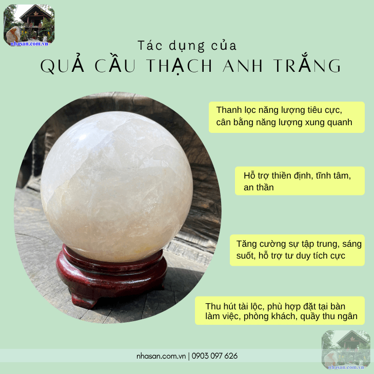 Quả cầu thạch anh trắng không chỉ là một vật phẩm trang trí, mà còn là một công cụ phong thủy mạnh mẽ, mang lại nhiều lợi ích đáng kinh ngạc: