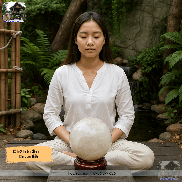 Thiền định với quả cầu thạch anh trắng