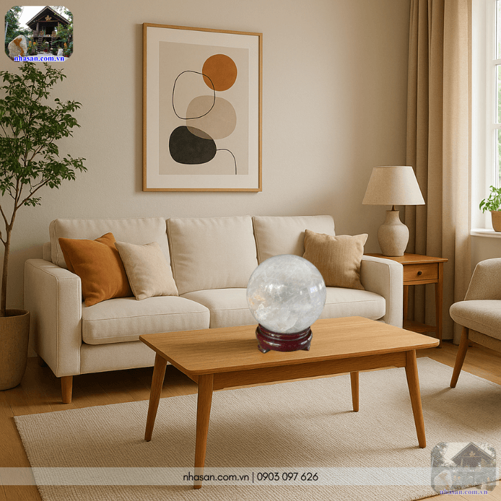 Vị trí đặt tốt để quả cầu thạch anh trắng QC1435 mang lại hiệu quả phong thủy:
