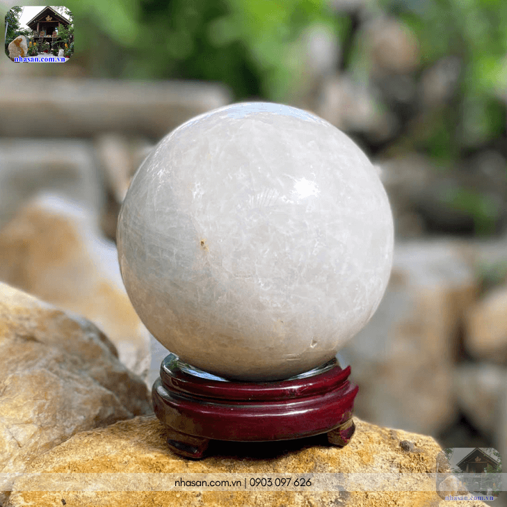 Quả cầu thạch anh trắng QC1438 là một trong những vật phẩm phong thủy được ưa chuộng nhờ nguồn năng lượng thuần khiết và mạnh mẽ mà nó mang lại: