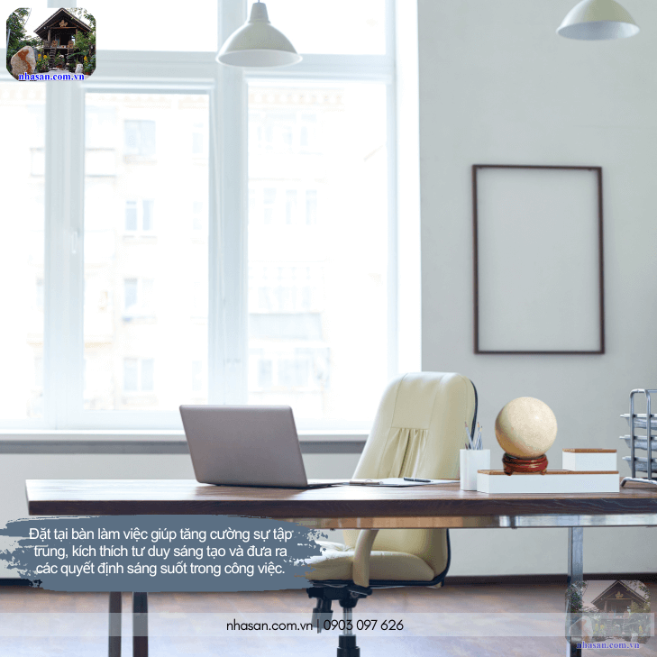 Đặt quả cầu thạch anh trắng trên bàn làm việc