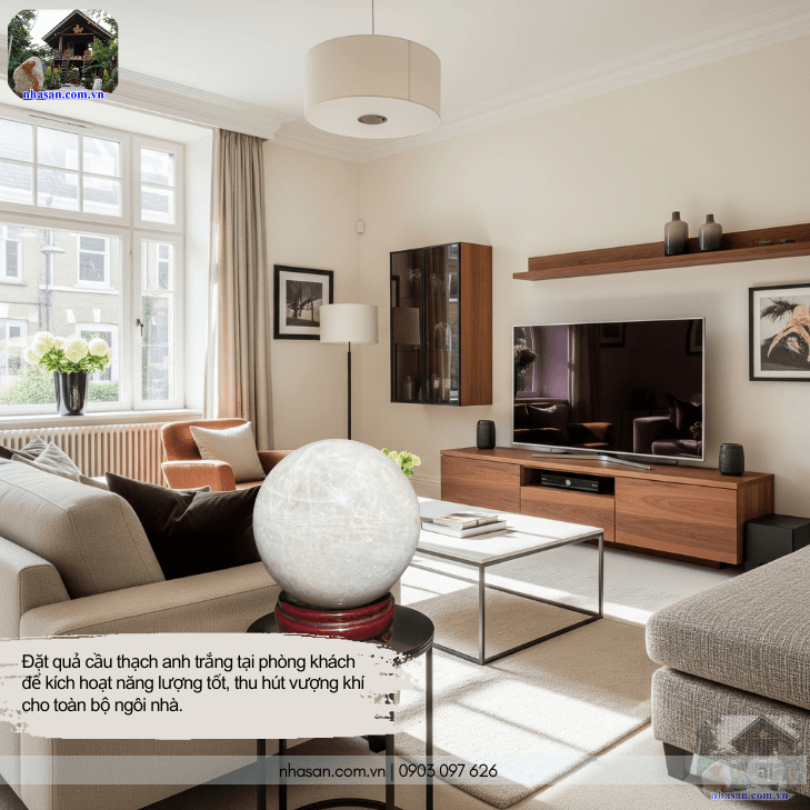 Đặt quả cầu thạch anh trắng tại phòng khách