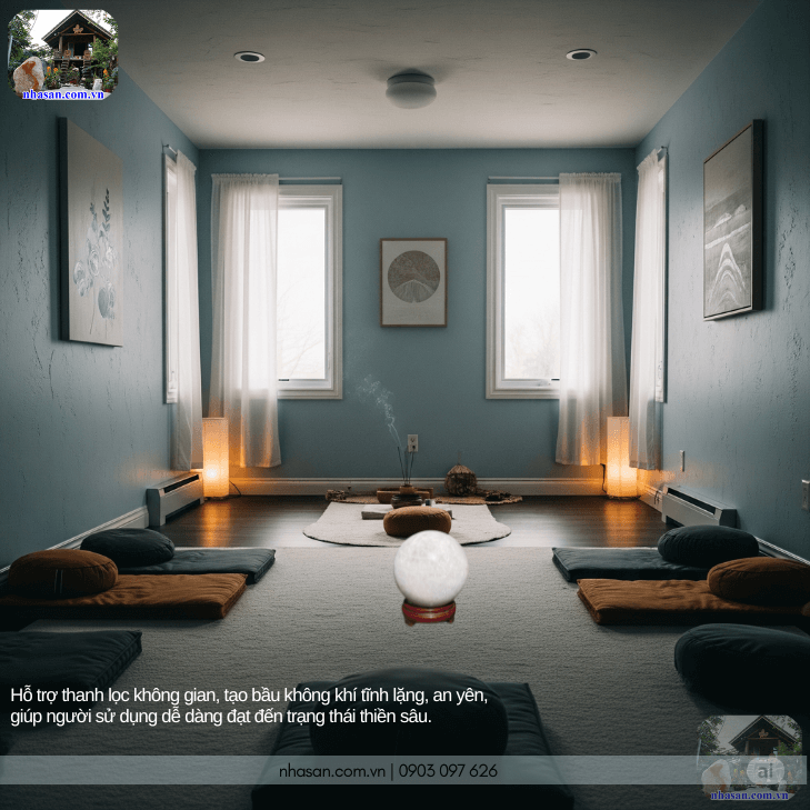 Đặt quả cầu thạch anh trắng tại phòng thiền