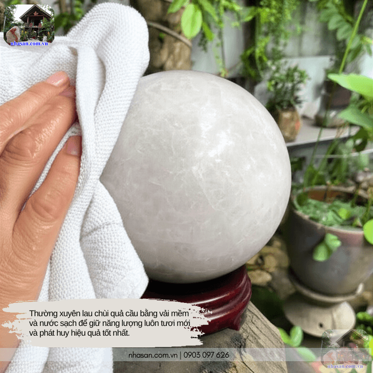 Lưu ý quan trọng: Tránh đặt ở những nơi ẩm ướt, nhiều bụi bẩn hoặc gần các nguồn nhiệt mạnh. Thường xuyên lau chùi quả cầu bằng vải mềm để giữ năng lượng luôn tươi mới và phát huy hiệu quả tốt nhất.